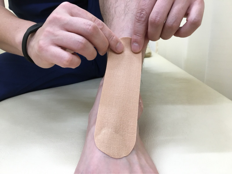 足首の位置、足首の皮膚の動き、この2つを同時に解決するのがこの貼り方です。